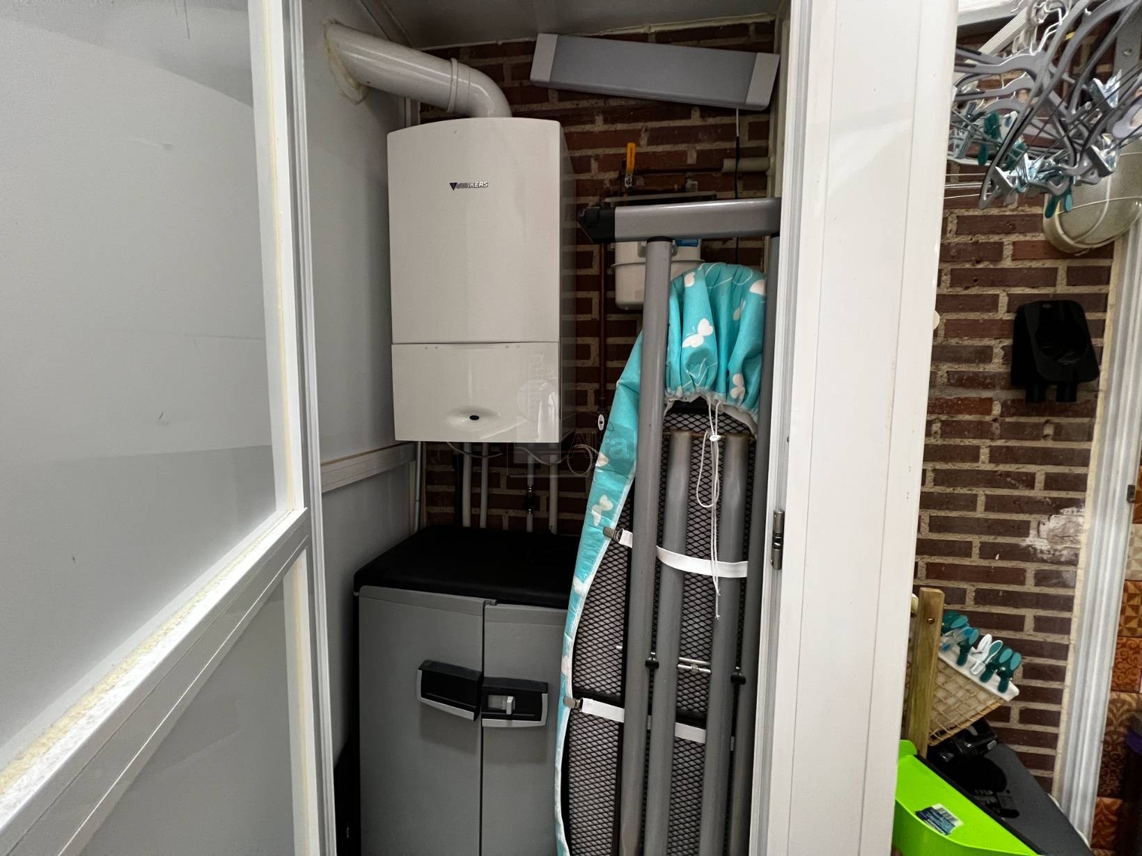 El tendedero está cubierto, en un pequeño espacio dónde también está la caldera de la vivienda.