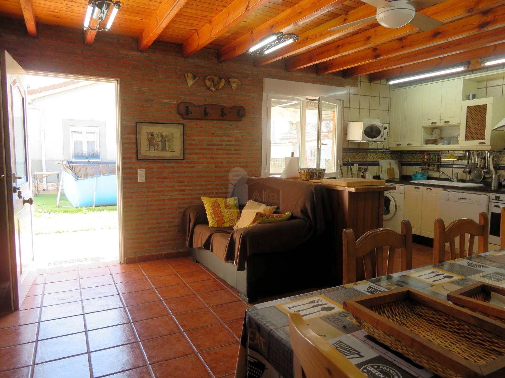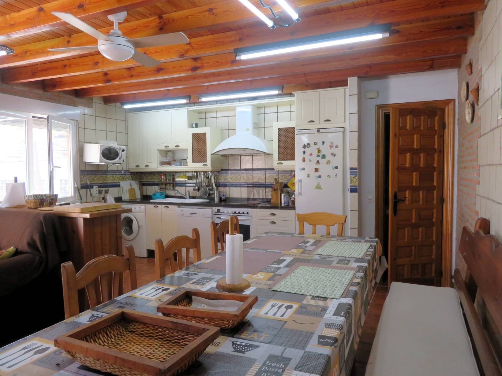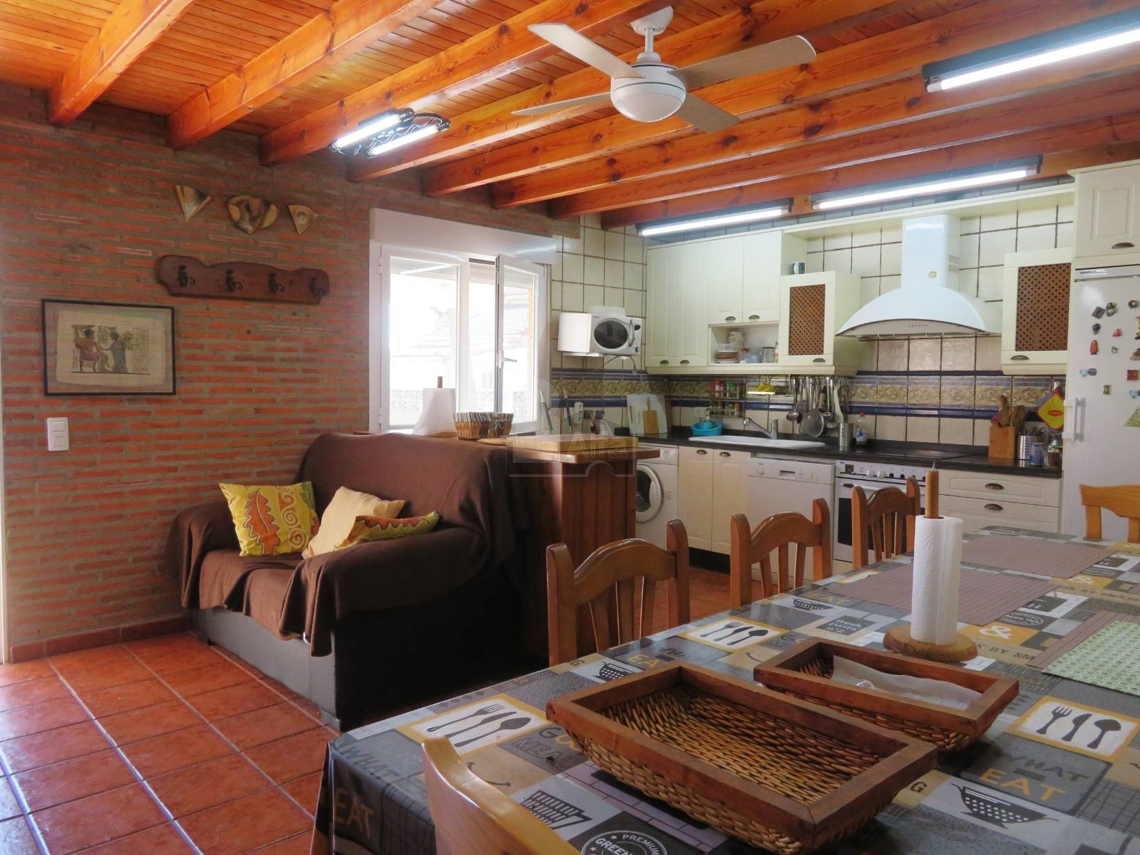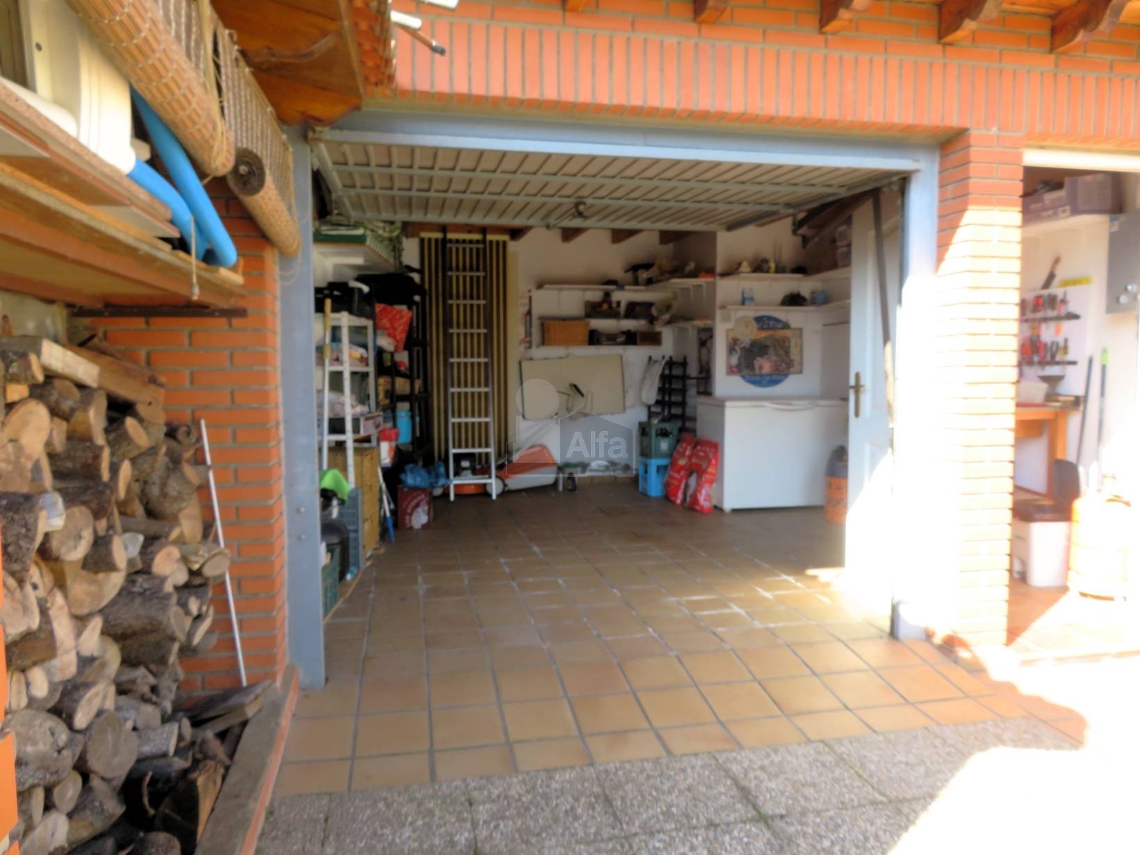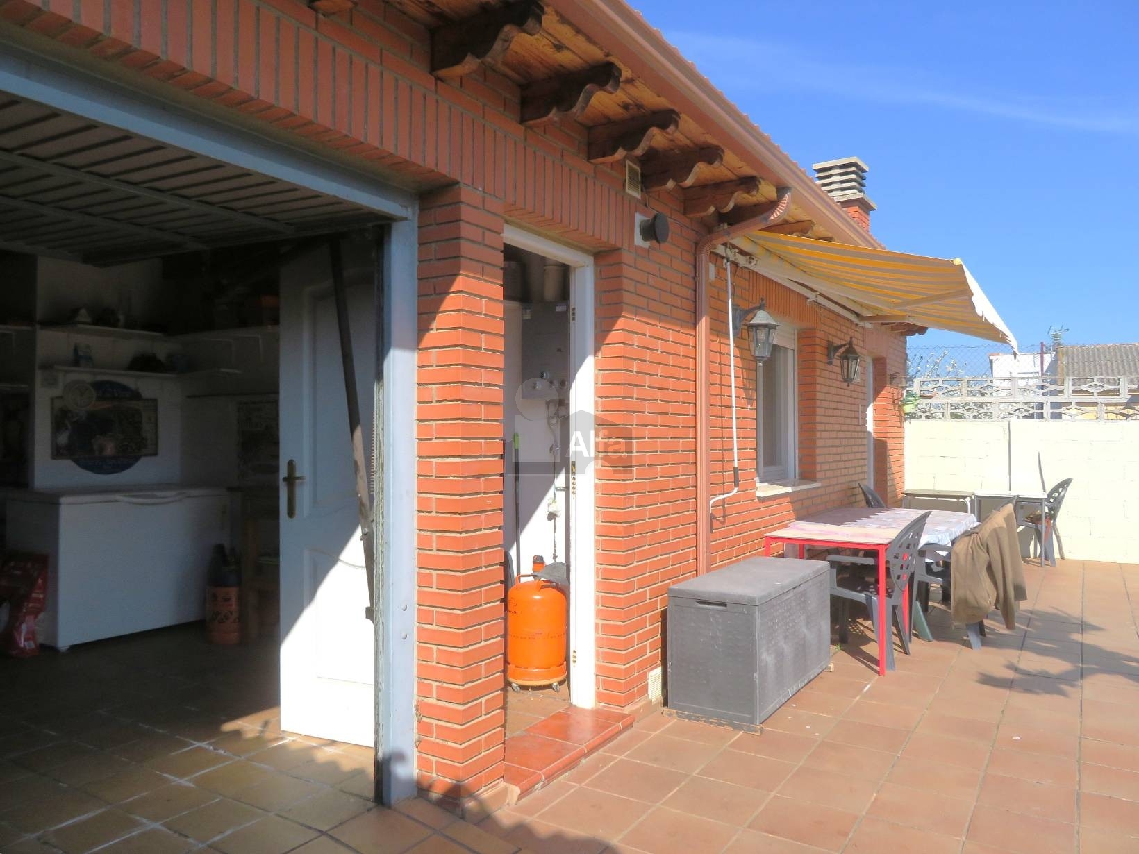 Complementariamente, en la parte trasera de la parcela, se ubica un espacio de 50 m² que integra un garaje, un amplio salón-comedor con cocina americana, también con chimenea, y un aseo, todo distribuido en una única planta para mayor comodidad.