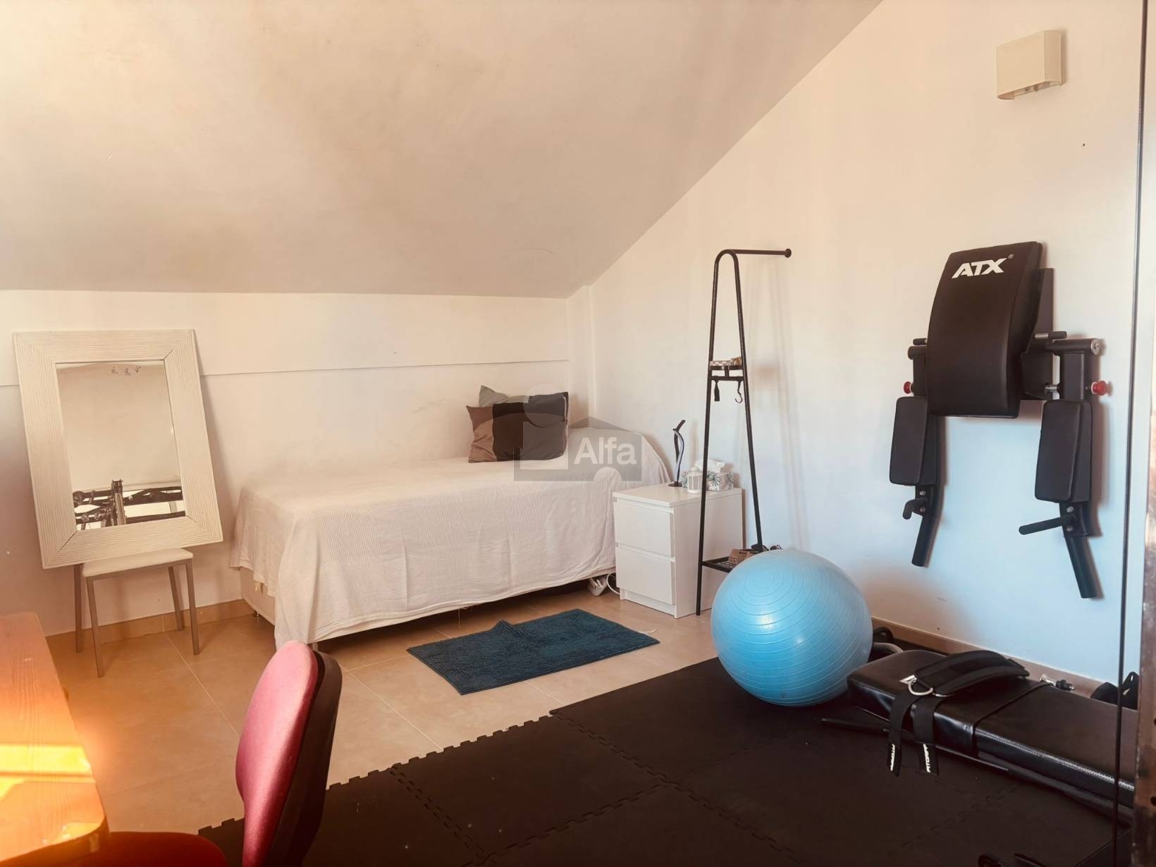 Subiendo a la primera planta, encontrarás tres luminosos dormitorios con armarios empotrados, perfectos para mantener todo en orden. Además, hay dos baños completos que garantizan la comodidad de todos los miembros de la familia. La terraza en esta planta es el lugar perfecto para relajarte al aire libre. La buhardilla equipada con gimnasio añade un toque especial a esta propiedad, ideal para quienes buscan mantenerse activos sin salir de casa.