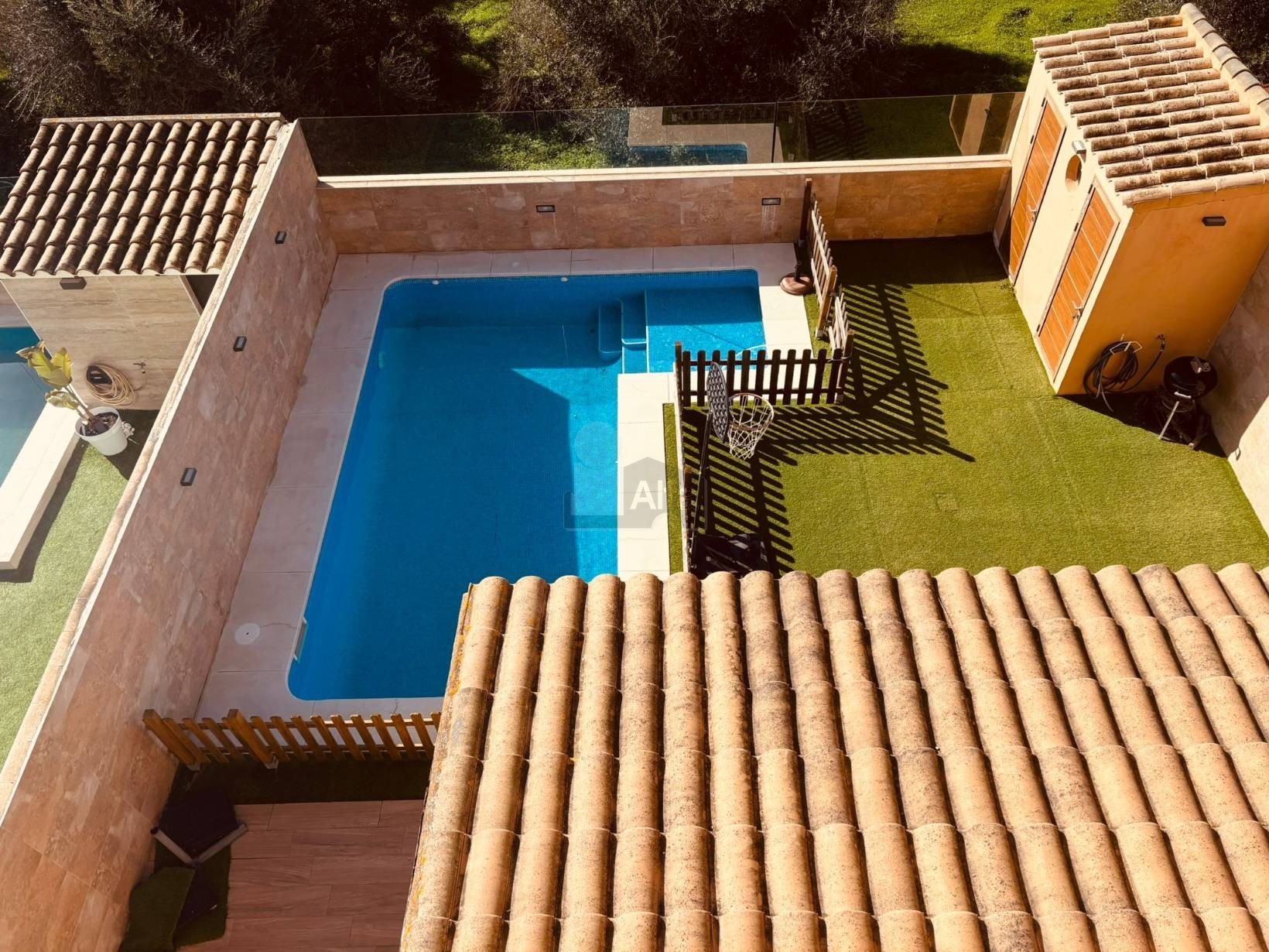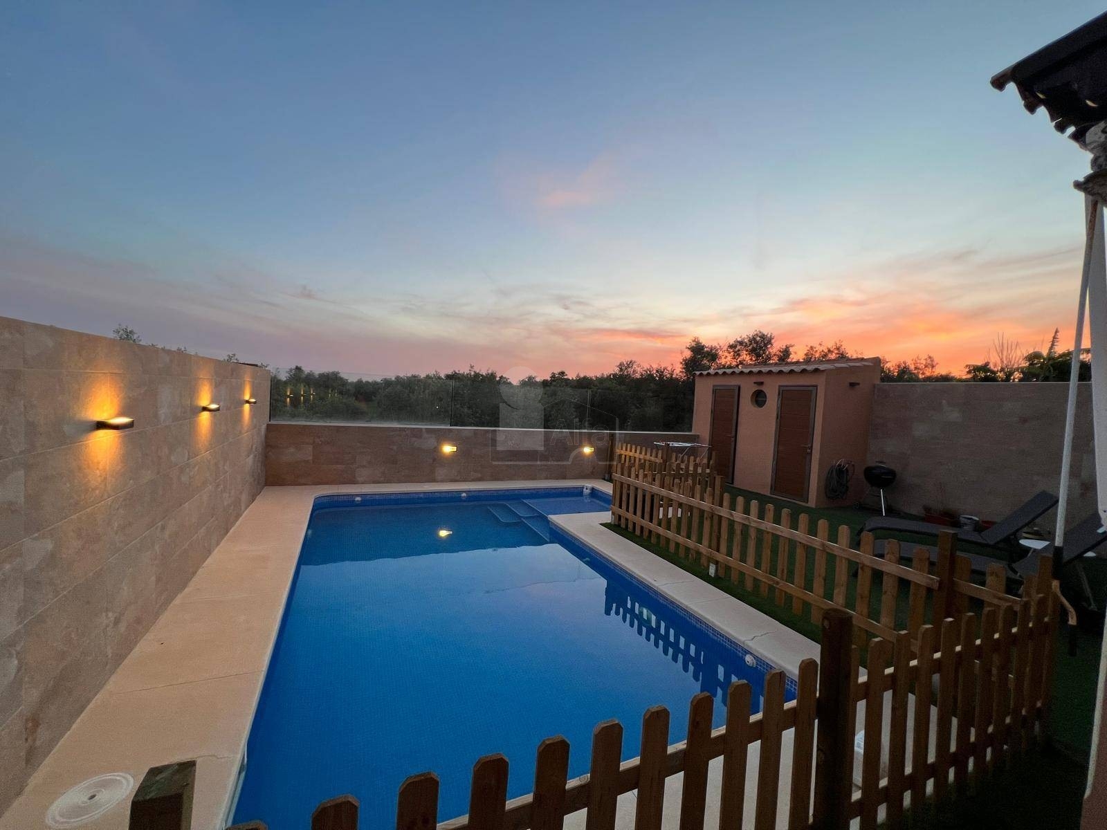Este chalet también cuenta con una piscina de agua salada, perfecta para refrescarse en los días calurosos. La plaza de garaje con pérgola de madera ofrece comodidad y protección para tu vehículo. Con aire acondicionado central independiente por planta y paneles solares que ayudan a reducir el consumo energético, esta casa es tanto eficiente como confortable. Además, la aerotermia proporciona agua caliente de manera sostenible.